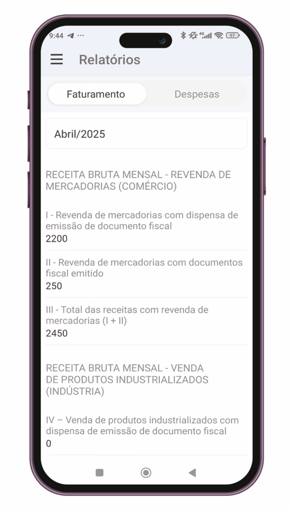 Acompanhe o desempenho do seu negócio com relatórios de vendas, despesas, lucro e obrigações fiscais.